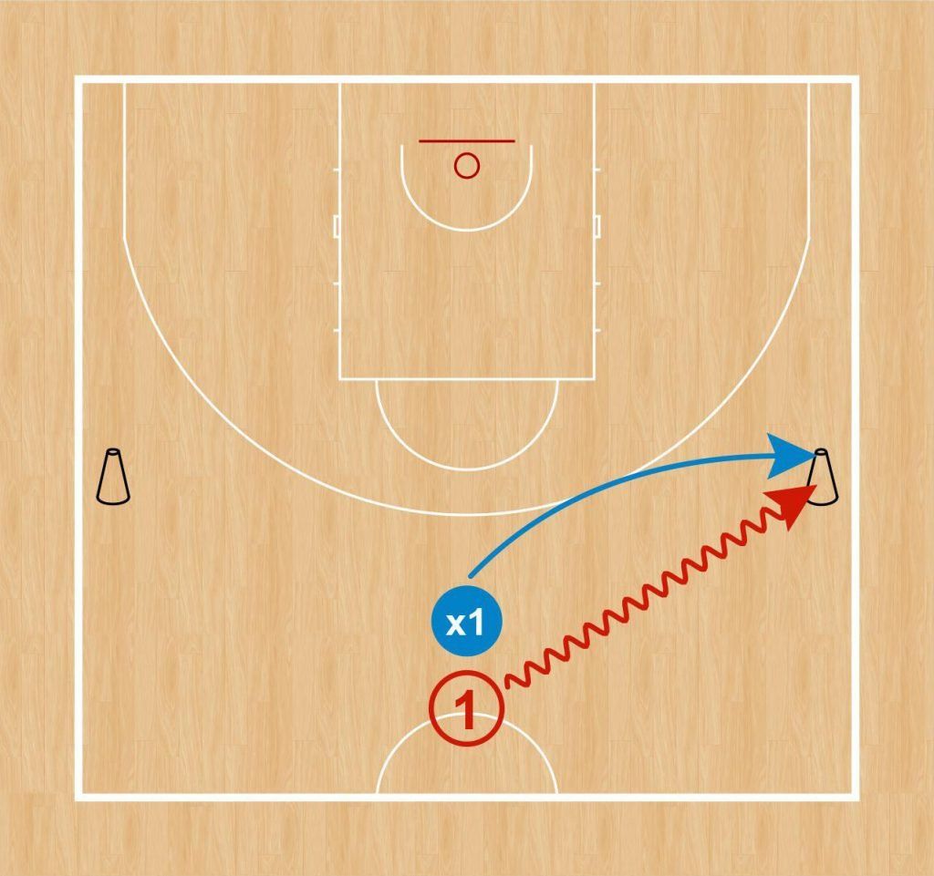 Una vez que todos los jugadores comiencen a asimilar el concepto de negar el centro, permitimos a cada atacante elegir hacia qué lado botar y, por lo tanto, jugar su 1c1.