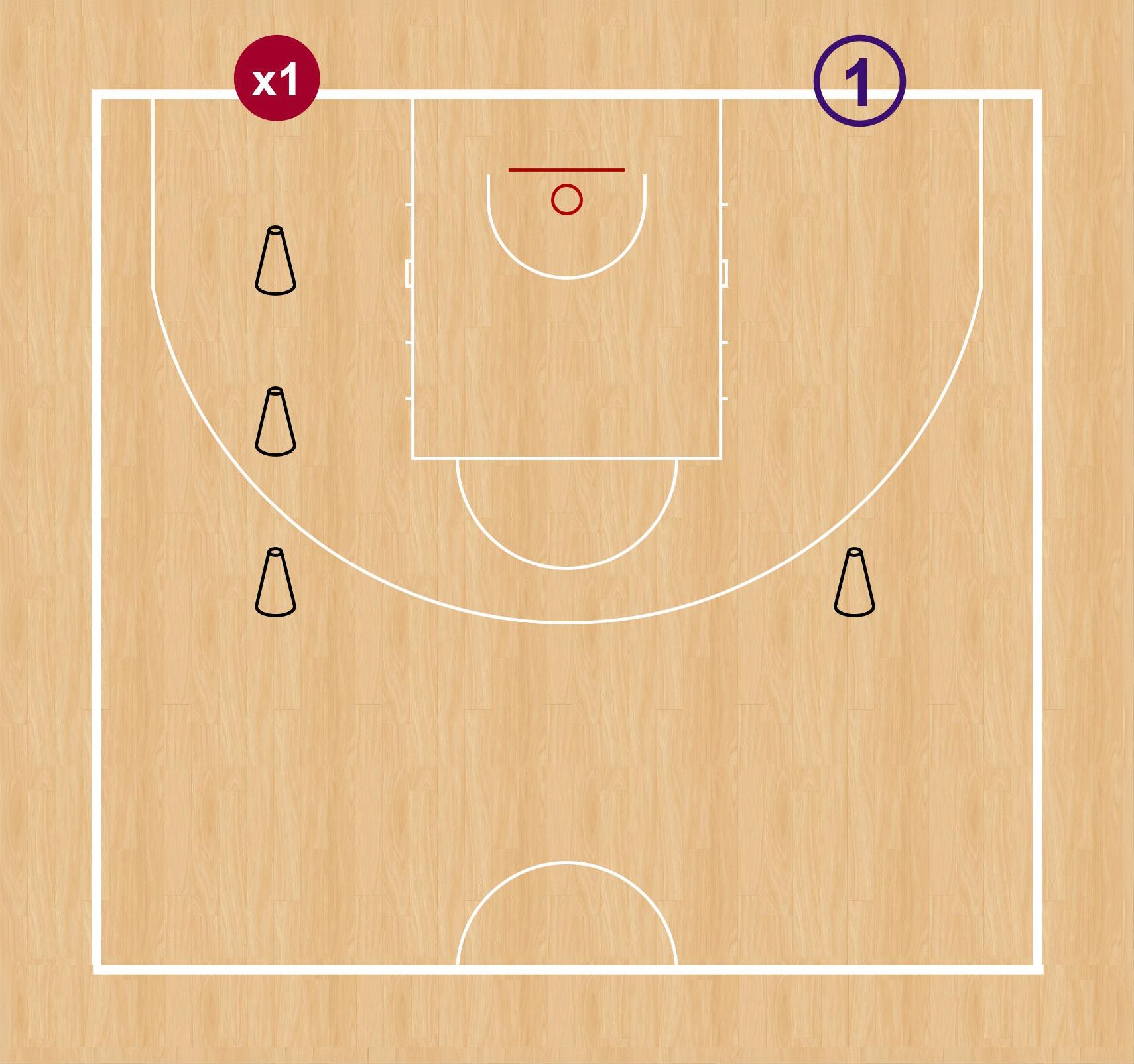 En base a la disposición inicial de nuestro gráfico destacado (fácilmente adaptable), el atacante marca el inicio de cada acción de 1c1 botando a toda velocidad para rodear el cono y finalizar con ventaja frente a la oposición defensiva de su rival.