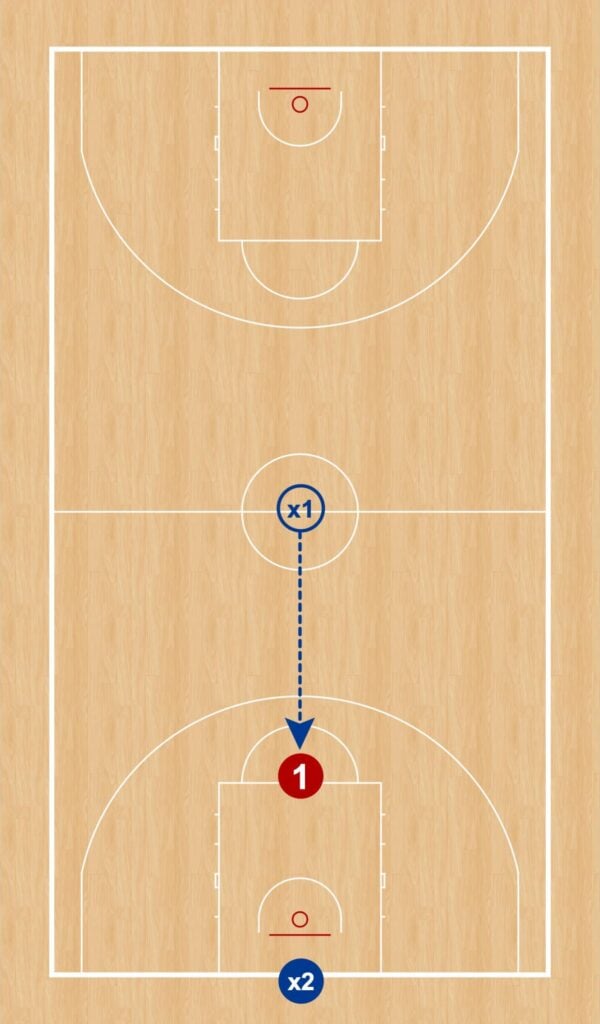 🏀 El primer defensor entrega el balón al jugador atacante para marcar el inicio del 1c2.