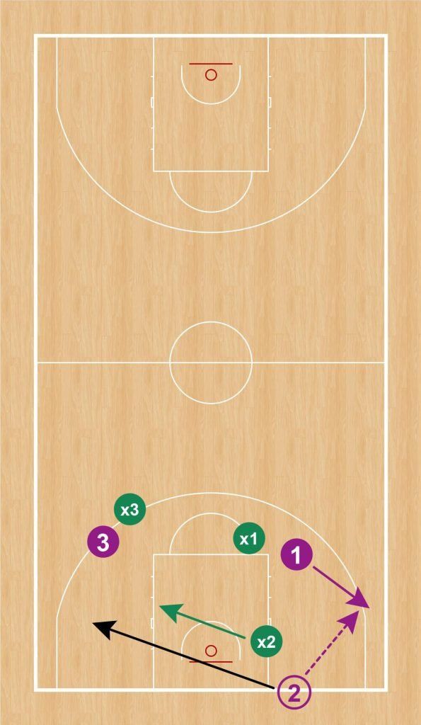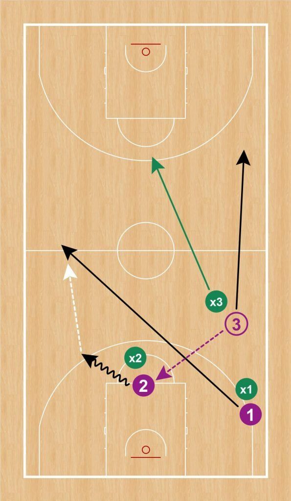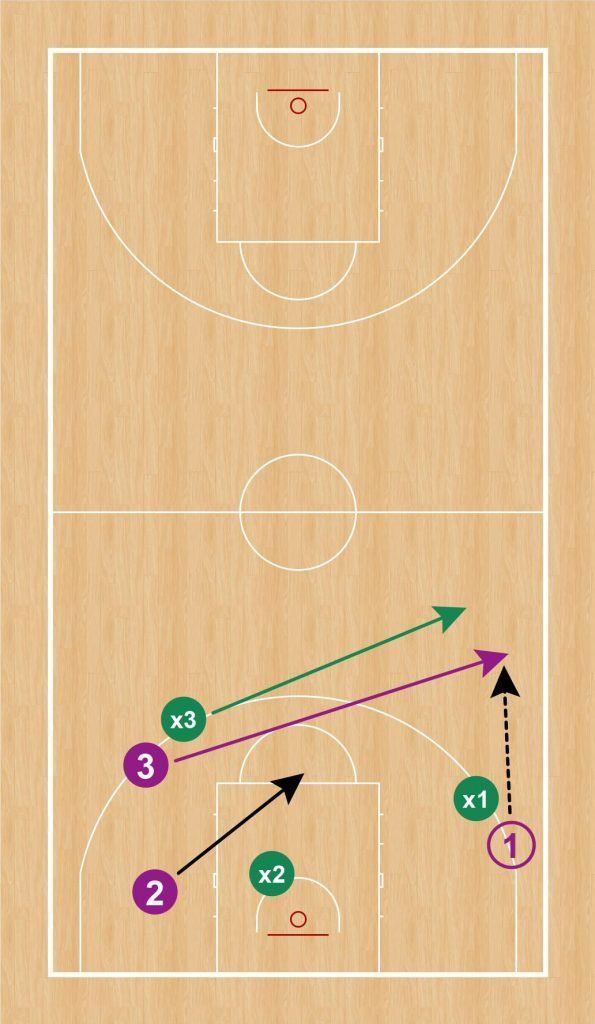 - Cambiar la rotación, permitiendo que un nuevo trío se incorpore al ejercicio sacando de fondo cada vez que los defensores anotan canasta tras robar el balón. Los defensores se mantienen para conseguir más puntos (igual que antes).