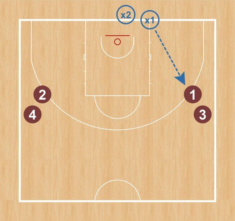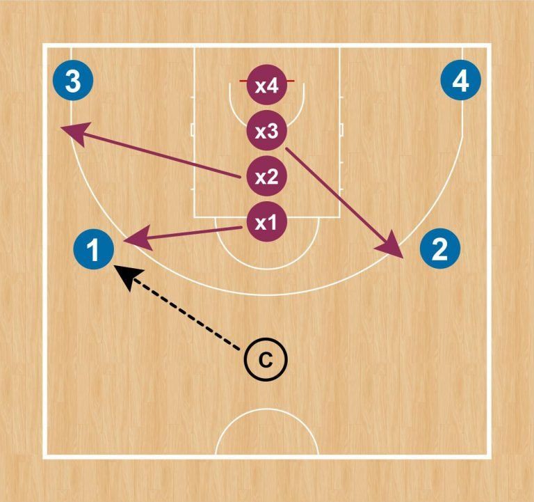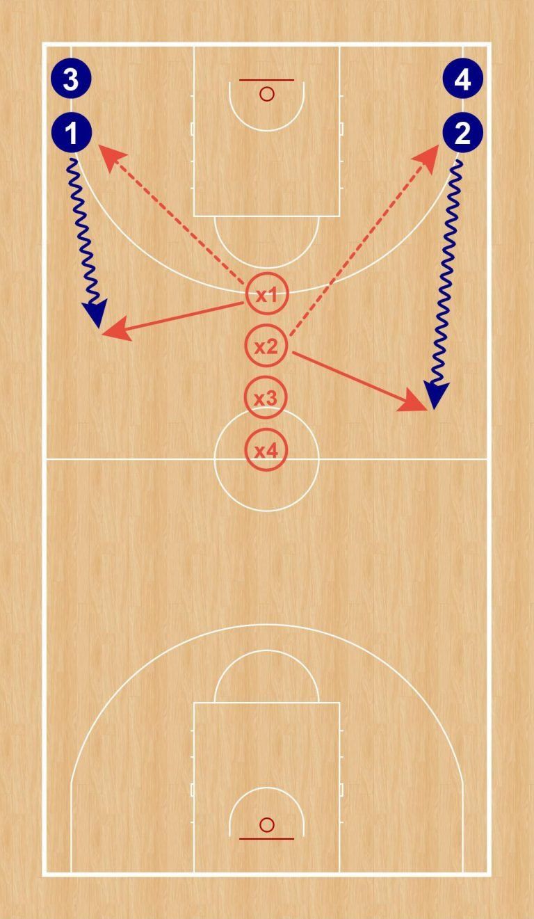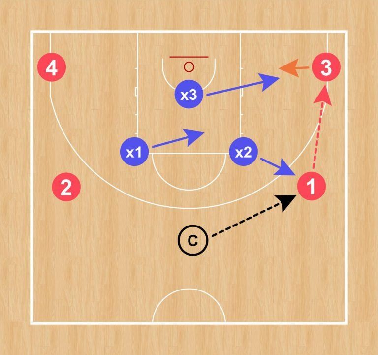 Esta doble situación de 1c1 utilizada en las selecciones formativas de la CABB (Confederación Argentina de Básquetbol) aglutina múltiples conceptos defensivos que nuestros jugadores deberán ser capaces de aplicar dentro de una misma acción: closeout agresivo, pasar del lado fuerte al lado débil, saltar a la primera ayuda defensiva parando una penetración… Disposición inicial siguiendo […]