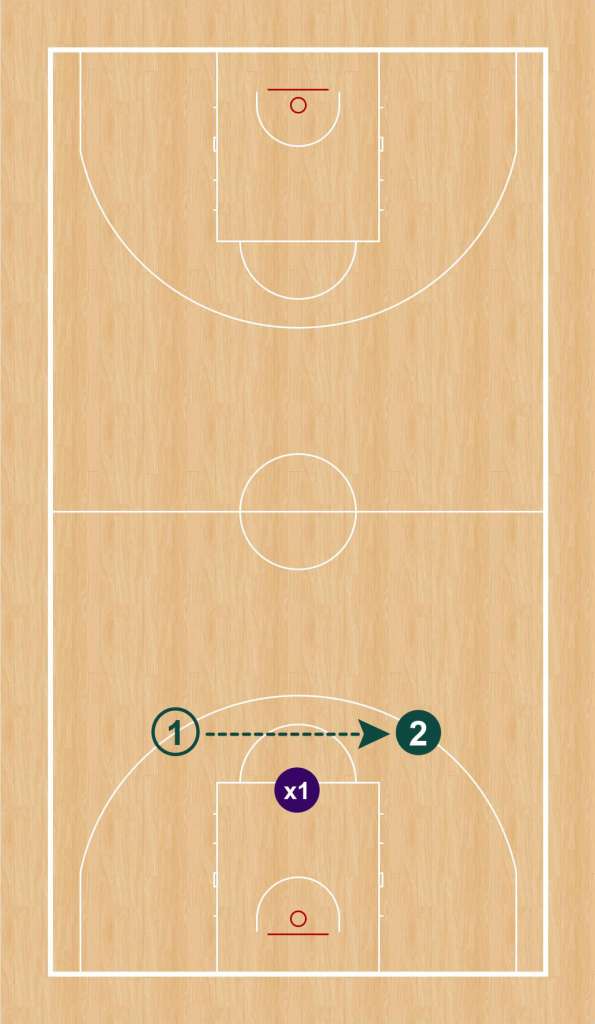 Dos jugadores comienzan dándose pases en estático sobre la línea de tres puntos.