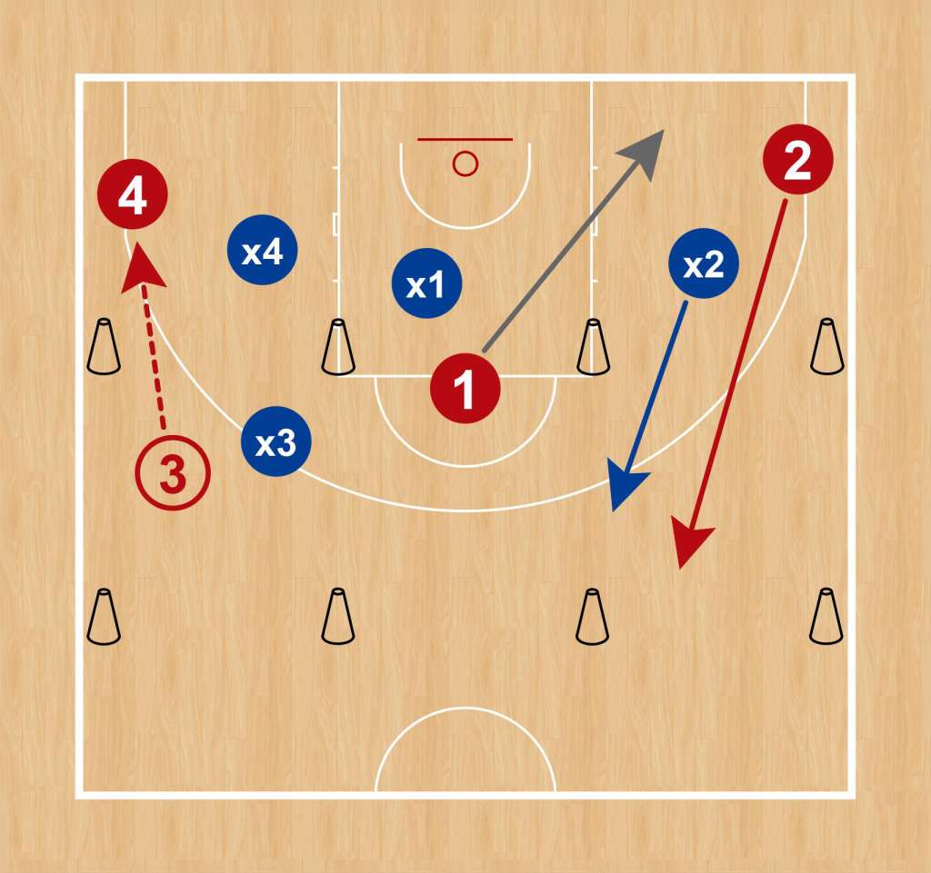 - Permitir que dos atacantes coincidan en el cuadrante de la canasta (jugar una simetría, cargar el rebote ofensivo…).
